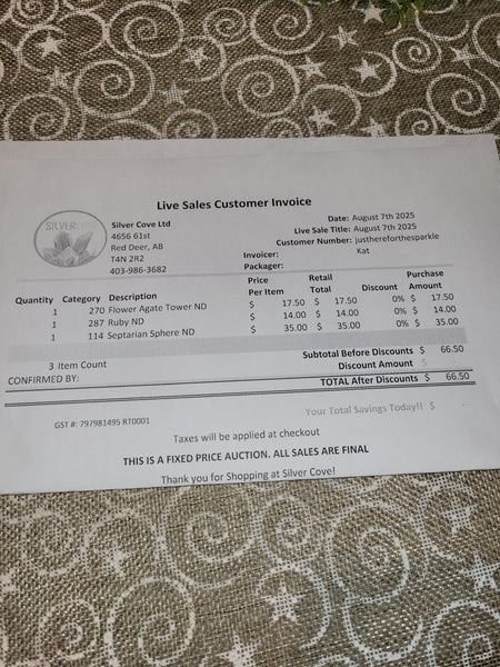 The total is already discounted with any sales you received, and you invoice is ready for check out. All you need to do is add it to your cart, along with any other items you would like to purchase and we will get your treasures on the way!