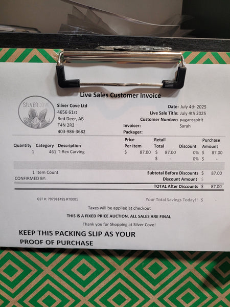 This is your invoice for the date listed above, and we hope you are as excited to get your items as we are! A photo of you invoice and your item(s) are included in this listing for you to review.