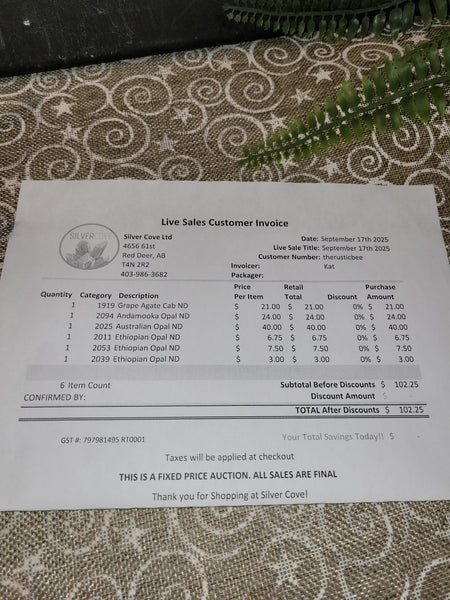 The total is already discounted with any sales you received, and you invoice is ready for check out. All you need to do is add it to your cart, along with any other items you would like to purchase and we will get your treasures on the way!