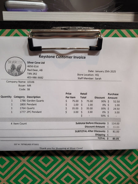 The total is already discounted with any sales you received, and you invoice is ready for check out. All you need to do is add it to your cart, along with any other items you would like to purchase and we will get your treasures on the way!