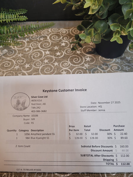 The total is already discounted with any sales you received, and you invoice is ready for check out. All you need to do is add it to your cart, along with any other items you would like to purchase and we will get your treasures on the way!