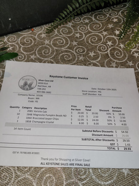 The total is already discounted with any sales you received, and you invoice is ready for check out. All you need to do is add it to your cart, along with any other items you would like to purchase and we will get your treasures on the way!