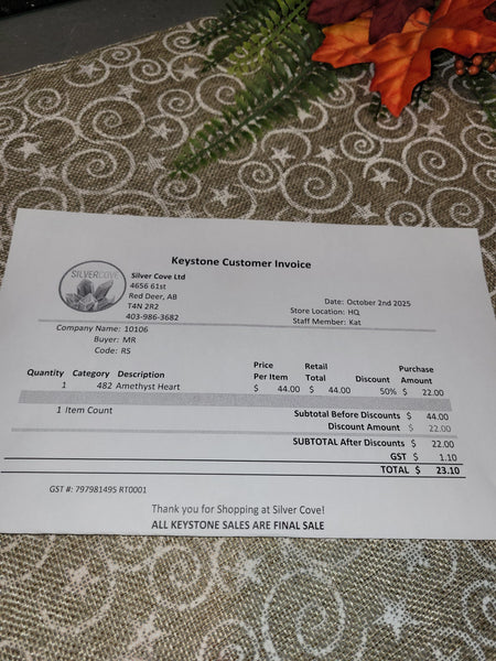 The total is already discounted with any sales you received, and you invoice is ready for check out. All you need to do is add it to your cart, along with any other items you would like to purchase and we will get your treasures on the way!