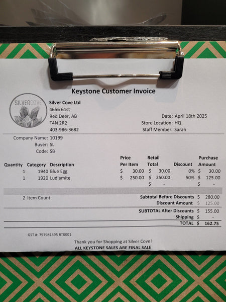The total is already discounted with any sales you received, and you invoice is ready for check out. All you need to do is add it to your cart, along with any other items you would like to purchase and we will get your treasures on the way!