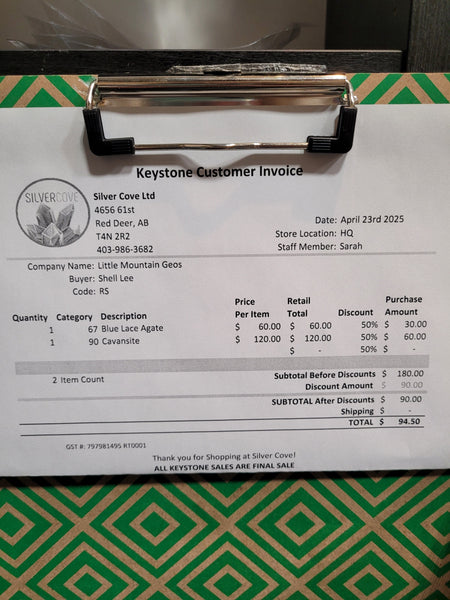 The total is already discounted with any sales you received, and you invoice is ready for check out. All you need to do is add it to your cart, along with any other items you would like to purchase and we will get your treasures on the way!