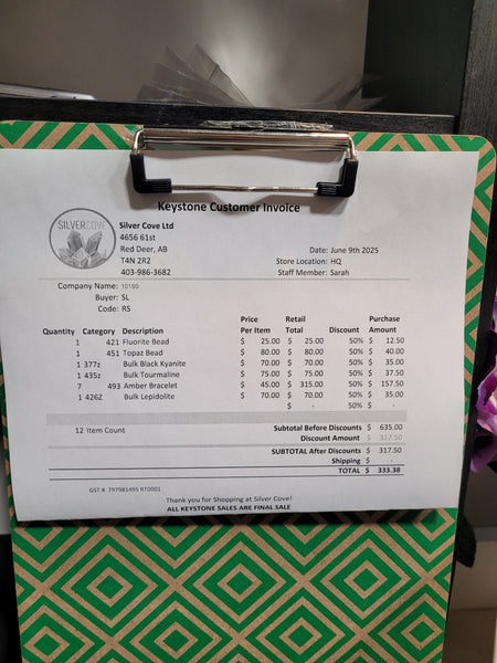 The total is already discounted with any sales you received, and you invoice is ready for check out. All you need to do is add it to your cart, along with any other items you would like to purchase and we will get your treasures on the way!