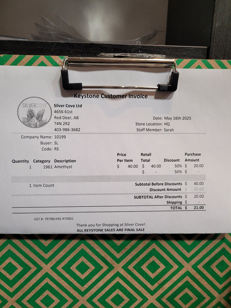 This is your invoice for the date listed above, and we hope you are as excited to get your items as we are! A photo of you invoice and your item(s) are included in this listing for you to review.