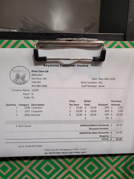 The total is already discounted with any sales you received, and you invoice is ready for check out. All you need to do is add it to your cart, along with any other items you would like to purchase and we will get your treasures on the way!