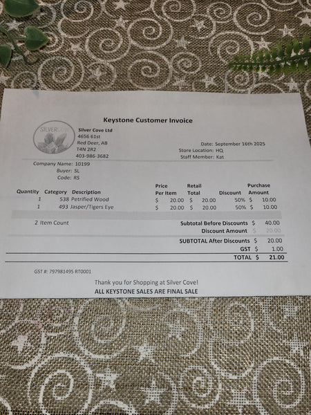 The total is already discounted with any sales you received, and you invoice is ready for check out. All you need to do is add it to your cart, along with any other items you would like to purchase and we will get your treasures on the way!