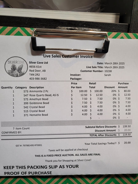 The total is already discounted with any sales you received, and you invoice is ready for check out. All you need to do is add it to your cart, along with any other items you would like to purchase and we will get your treasures on the way!