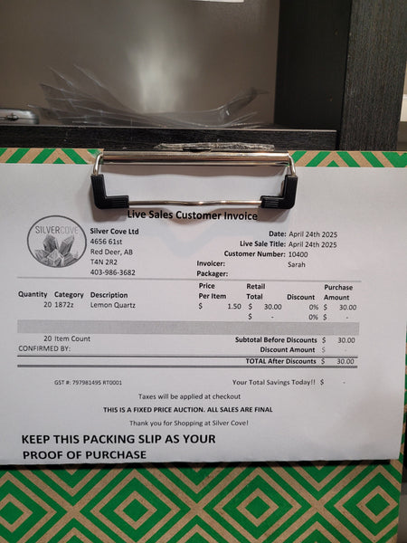 This is your invoice for the date listed above, and we hope you are as excited to get your items as we are! A photo of you invoice and your item(s) are included in this listing for you to review.