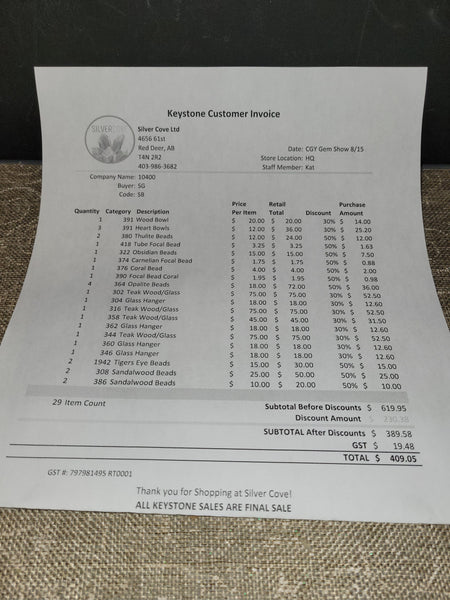 We hope you had a wonderful time on our recent live sale auction. We love sharing our passion for the mineral kingdom with you. Below you will find the packing list with the items you purchased. These items are wrapped, packed, and ready to go when you are. Items purchased in the auction are due within 14 days of the live. Invoices can be combined in your cart, allowing you to check out multiple live events, plus items on the online store seamlessly. If any of the items were already discounted in the live sale auction, you will see them in a separate column in the listing below. We will reverse engineer the listing so that it reflects properly in your cart.  We love what we do and thank you for being a part of our success. We hope to see you on another live sale auction very soon.