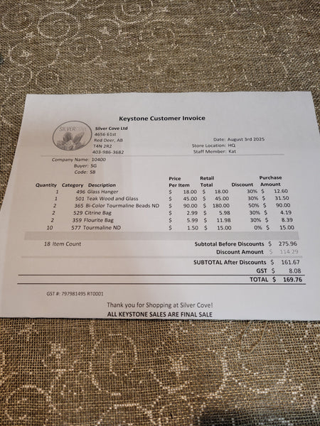 The total is already discounted with any sales you received, and you invoice is ready for check out. All you need to do is add it to your cart, along with any other items you would like to purchase and we will get your treasures on the way!