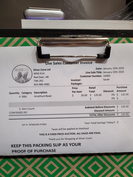 This is your invoice for the date listed above, and we hope you are as excited to get your items as we are! A photo of you invoice and your item(s) are included in this listing for you to review.