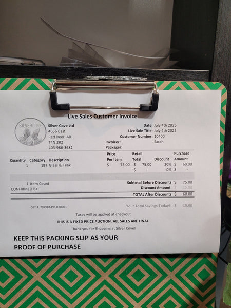 This is your invoice for the date listed above, and we hope you are as excited to get your items as we are! A photo of you invoice and your item(s) are included in this listing for you to review.