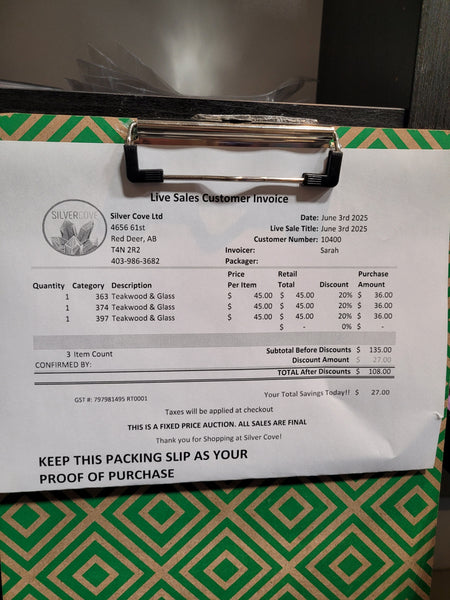 This is your invoice for the date listed above, and we hope you are as excited to get your items as we are! A photo of you invoice and your item(s) are included in this listing for you to review.