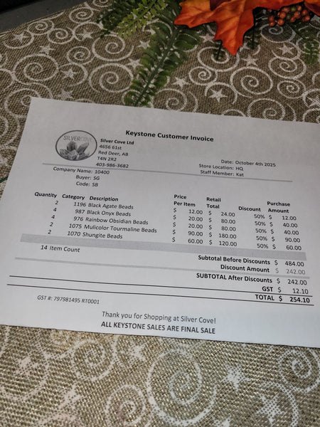 The total is already discounted with any sales you received, and you invoice is ready for check out. All you need to do is add it to your cart, along with any other items you would like to purchase and we will get your treasures on the way!