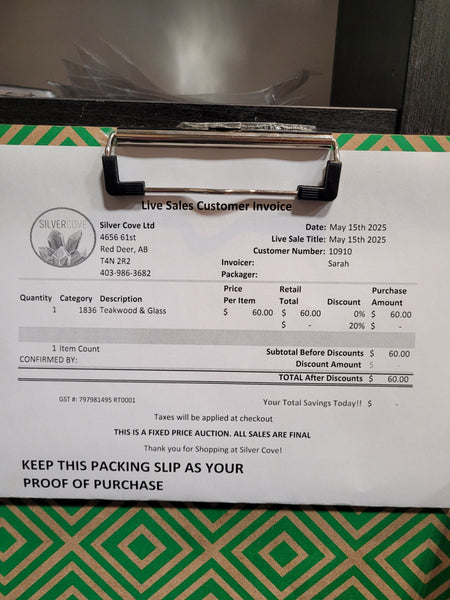 This is your invoice for the date listed above, and we hope you are as excited to get your items as we are! A photo of you invoice and your item(s) are included in this listing for you to review.