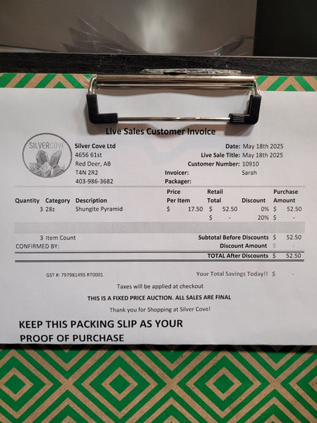 This is your invoice for the date listed above, and we hope you are as excited to get your items as we are! A photo of you invoice and your item(s) are included in this listing for you to review.