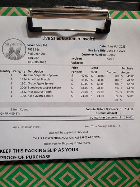 This is your invoice for the date listed above, and we hope you are as excited to get your items as we are! A photo of you invoice and your item(s) are included in this listing for you to review.