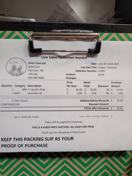 This is your invoice for the date listed above, and we hope you are as excited to get your items as we are! A photo of you invoice and your item(s) are included in this listing for you to review.