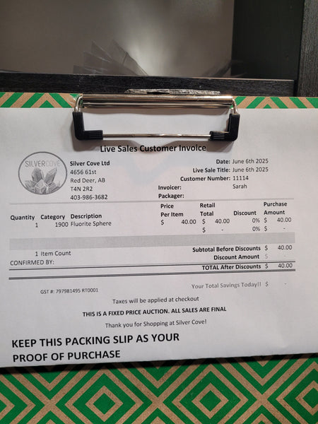This is your invoice for the date listed above, and we hope you are as excited to get your items as we are! A photo of you invoice and your item(s) are included in this listing for you to review.