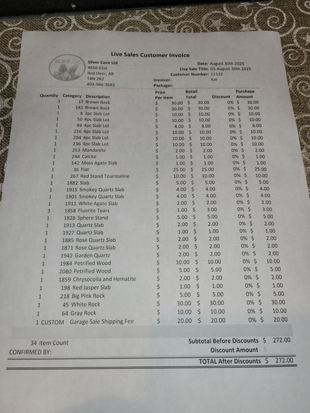 This is your invoice for the date listed above, and we hope you are as excited to get your items as we are! A photo of you invoice and your item(s) are included in this listing for you to review.