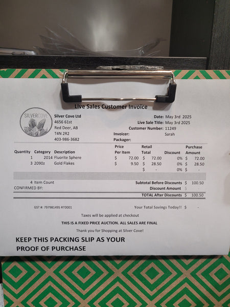 This is your invoice for the date listed above, and we hope you are as excited to get your items as we are! A photo of you invoice and your item(s) are included in this listing for you to review.