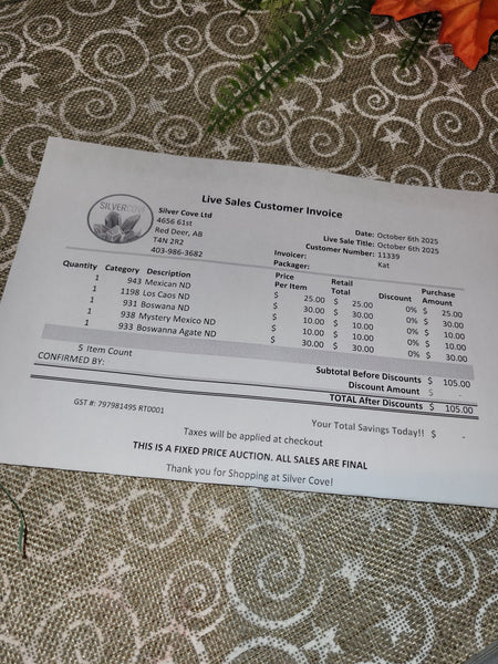 This is your invoice for the date listed above, and we hope you are as excited to get your items as we are! A photo of you invoice and your item(s) are included in this listing for you to review.