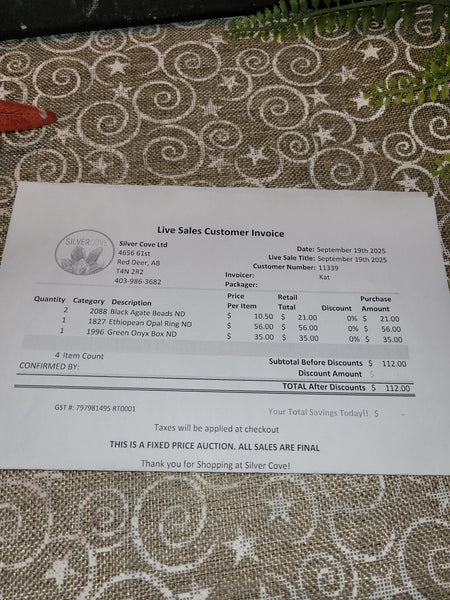This is your invoice for the date listed above, and we hope you are as excited to get your items as we are! A photo of you invoice and your item(s) are included in this listing for you to review.