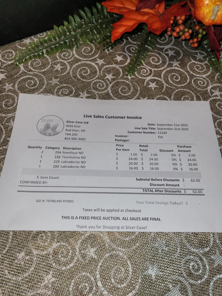 The total is already discounted with any sales you received, and you invoice is ready for check out. All you need to do is add it to your cart, along with any other items you would like to purchase and we will get your treasures on the way!
