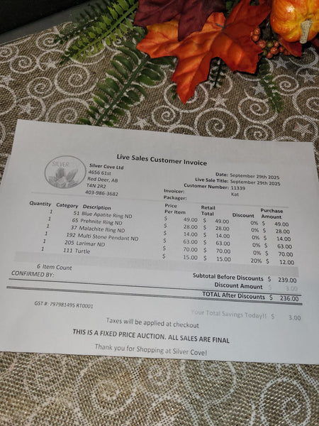 The total is already discounted with any sales you received, and you invoice is ready for check out. All you need to do is add it to your cart, along with any other items you would like to purchase and we will get your treasures on the way!