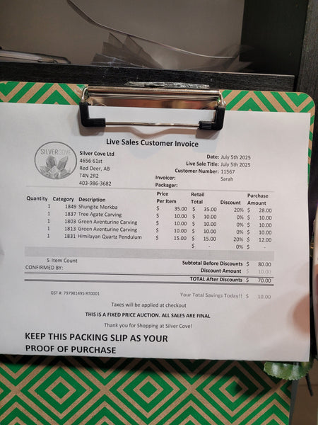 This is your invoice for the date listed above, and we hope you are as excited to get your items as we are! A photo of you invoice and your item(s) are included in this listing for you to review.