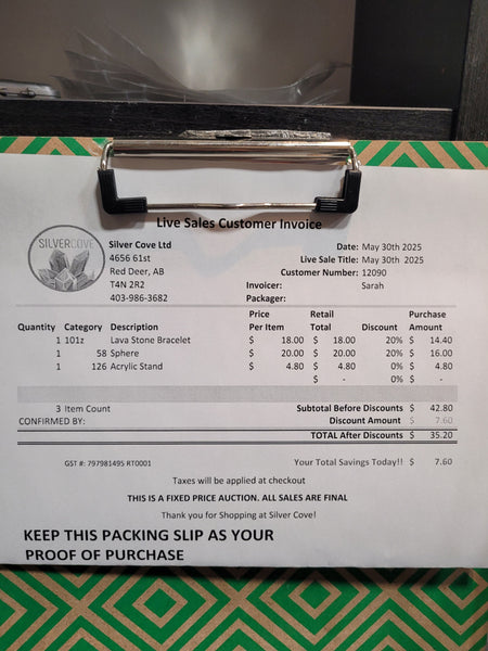 This is your invoice for the date listed above, and we hope you are as excited to get your items as we are! A photo of you invoice and your item(s) are included in this listing for you to review.