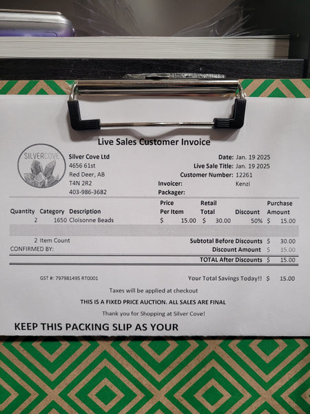 The total is already discounted with any sales you received, and you invoice is ready for check out. All you need to do is add it to your cart, along with any other items you would like to purchase and we will get your treasures on the way!