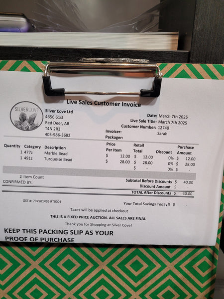 This is your invoice for the date listed above, and we hope you are as excited to get your items as we are! A photo of you invoice and your item(s) are included in this listing for you to review.