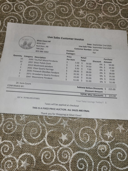 This is your invoice for the date listed above, and we hope you are as excited to get your items as we are! A photo of you invoice and your item(s) are included in this listing for you to review.