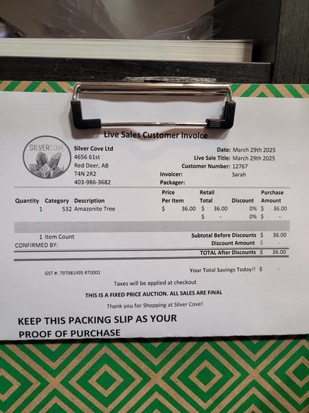 This is your invoice for the date listed above, and we hope you are as excited to get your items as we are! A photo of you invoice and your item(s) are included in this listing for you to review.