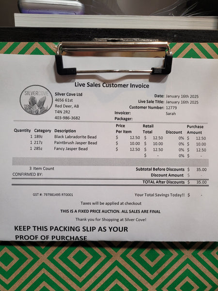 This is your invoice for the date listed above, and we hope you are as excited to get your items as we are! A photo of you invoice and your item(s) are included in this listing for you to review.