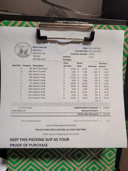 This is your invoice for the date listed above, and we hope you are as excited to get your items as we are! A photo of you invoice and your item(s) are included in this listing for you to review.