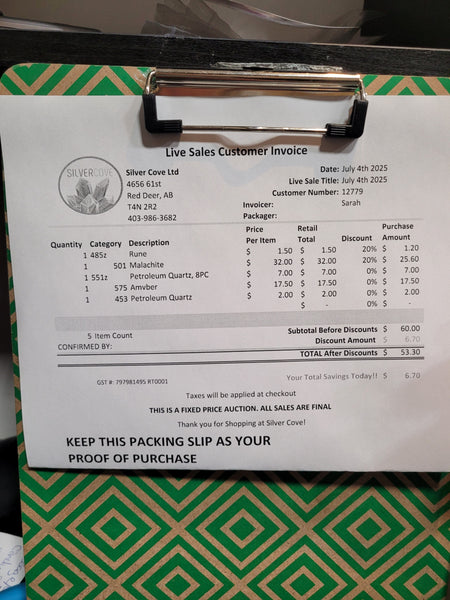 This is your invoice for the date listed above, and we hope you are as excited to get your items as we are! A photo of you invoice and your item(s) are included in this listing for you to review.