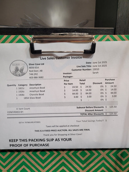 This is your invoice for the date listed above, and we hope you are as excited to get your items as we are! A photo of you invoice and your item(s) are included in this listing for you to review.