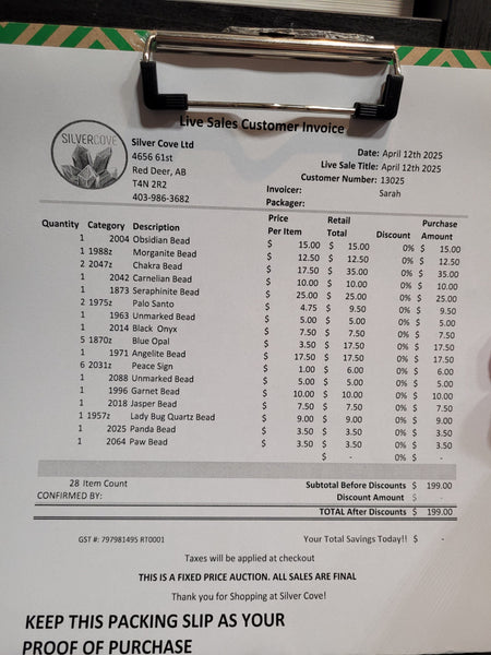 The total is already discounted with any sales you received, and you invoice is ready for check out. All you need to do is add it to your cart, along with any other items you would like to purchase and we will get your treasures on the way!