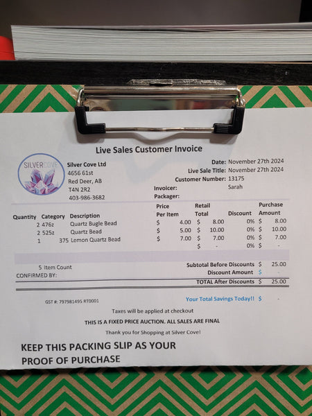 This is your invoice for the date listed above, and we hope you are as excited to get your items as we are! A photo of you invoice and your item(s) are included in this listing for you to review.