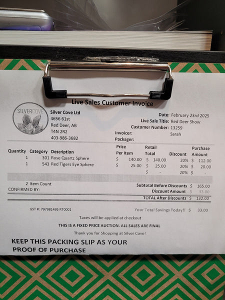This is your invoice for the date listed above, and we hope you are as excited to get your items as we are! A photo of you invoice and your item(s) are included in this listing for you to review.