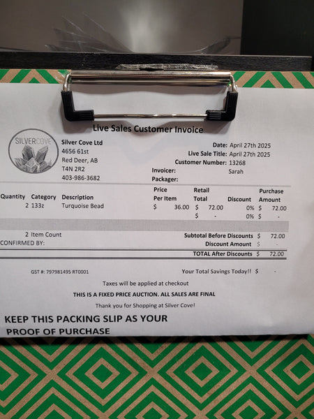 This is your invoice for the date listed above, and we hope you are as excited to get your items as we are! A photo of you invoice and your item(s) are included in this listing for you to review.