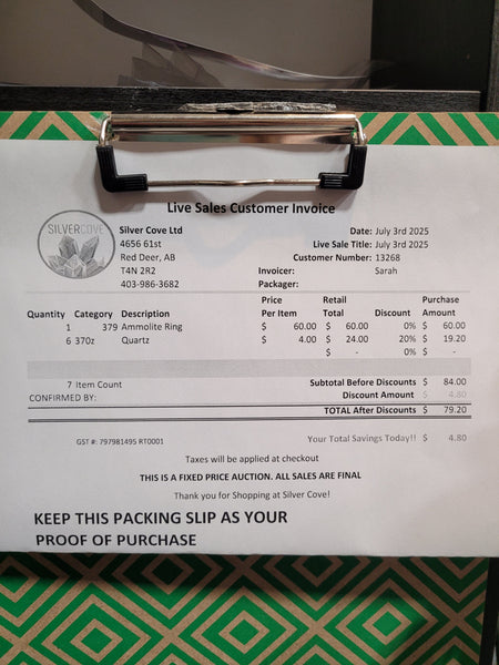 The total is already discounted with any sales you received, and you invoice is ready for check out. All you need to do is add it to your cart, along with any other items you would like to purchase and we will get your treasures on the way!