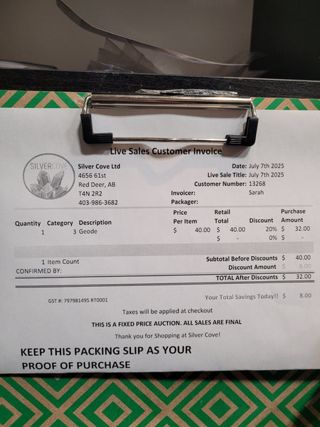 This is your invoice for the date listed above, and we hope you are as excited to get your items as we are! A photo of you invoice and your item(s) are included in this listing for you to review.
