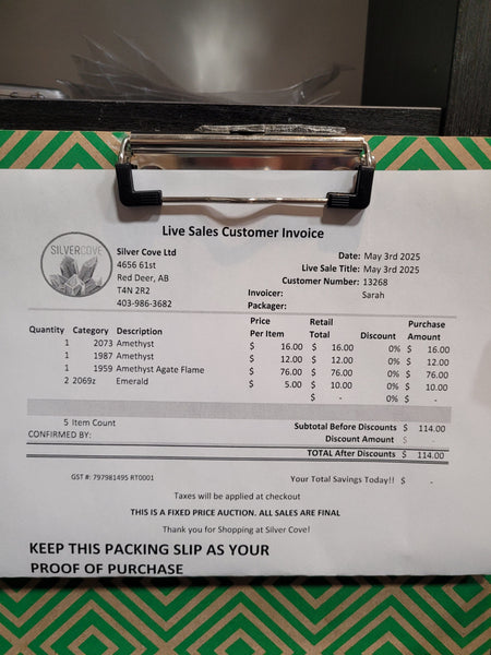 This is your invoice for the date listed above, and we hope you are as excited to get your items as we are! A photo of you invoice and your item(s) are included in this listing for you to review.