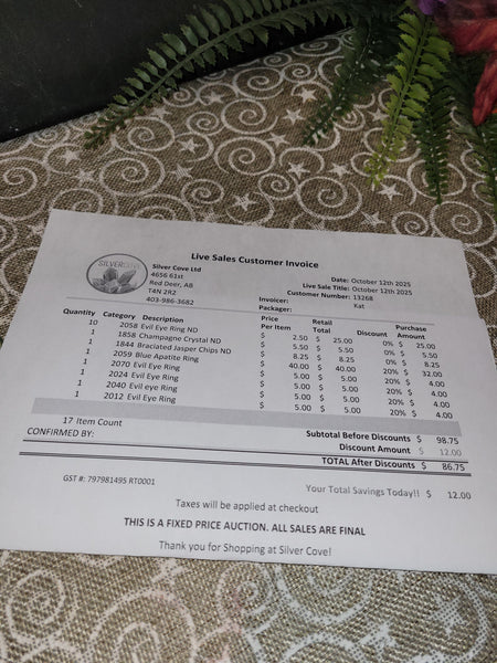 The total is already discounted with any sales you received, and you invoice is ready for check out. All you need to do is add it to your cart, along with any other items you would like to purchase and we will get your treasures on the way!